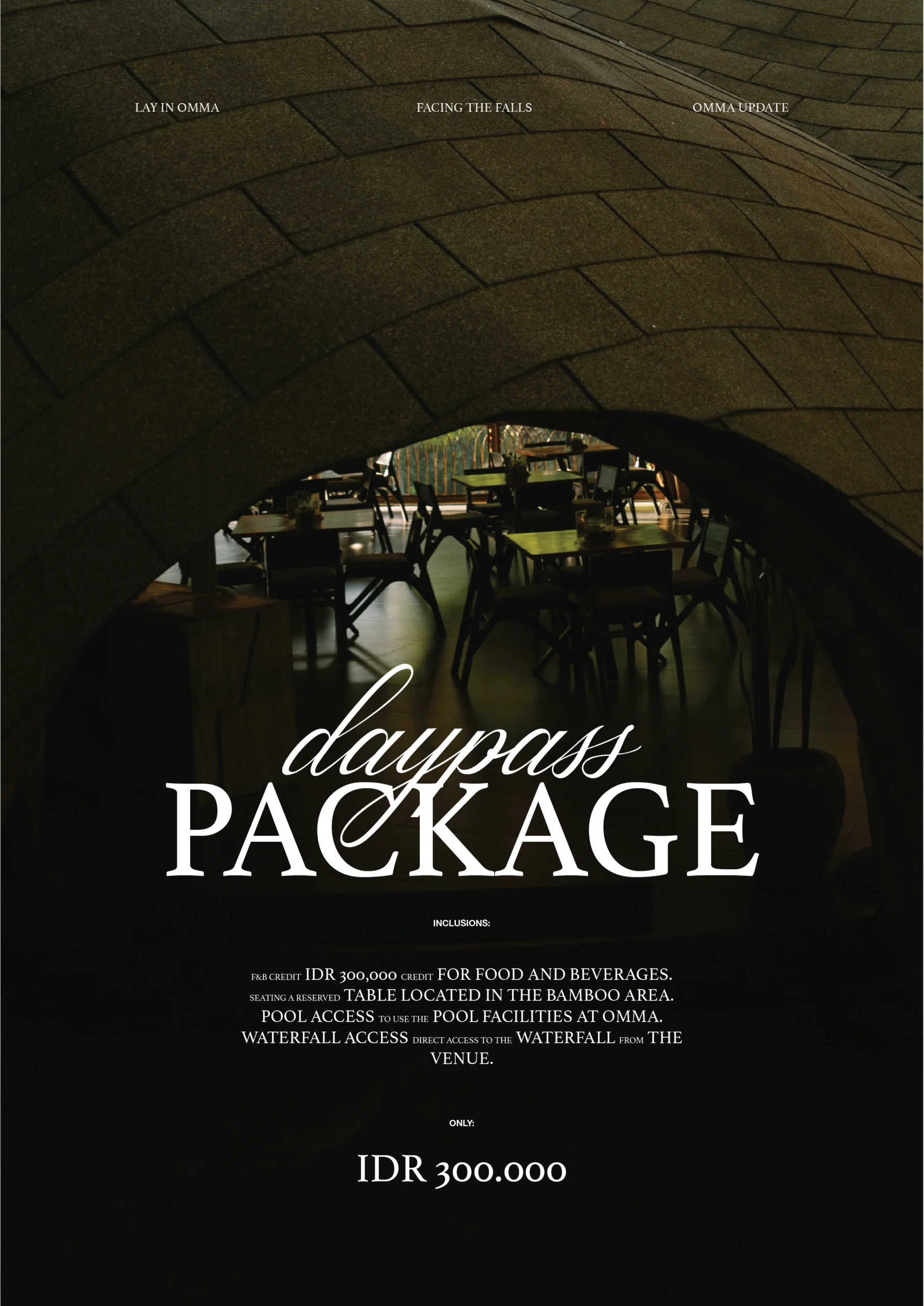 Immerse yourself in the heart of Ubud’s natural beauty with our signature Daypass. This package offers the perfect blend of relaxation and adventure, providing you with a reserved table in our iconic Bamboo area while you take in the views of the majestic Tegenungan Waterfall. Whether you are looking to refresh yourself with a swim in the pool or enjoy a curated dining experience, the OMMA Daypass is your ticket to an unforgettable day in paradise.